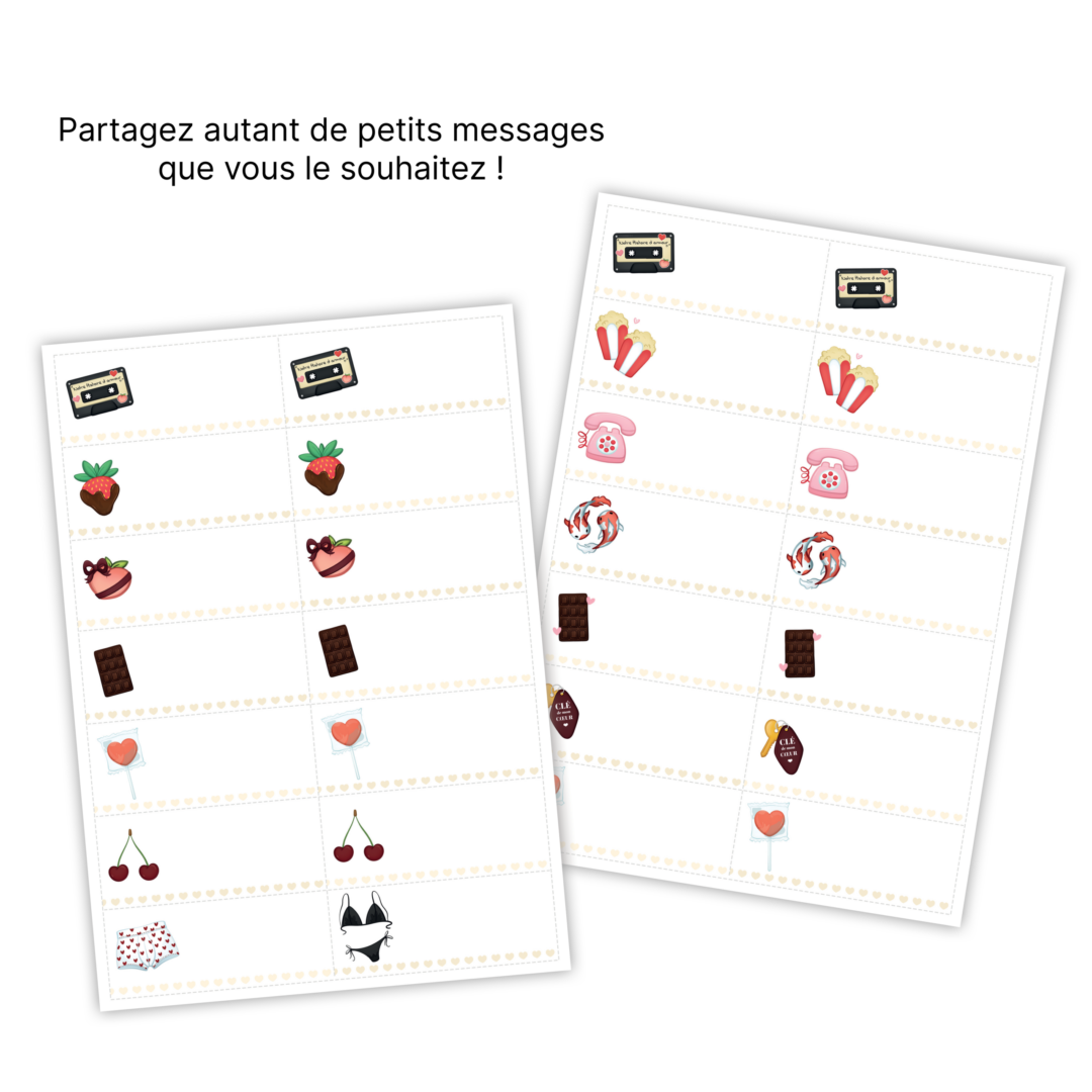 Ajoute simplement cet article à ton panier, valide la commande gratuitement et télécharge ton fichier PDF. Ensuite, imprime, découpe, remplis… et offre à ta moitié une boîte remplie d’amour 🫶🏼.