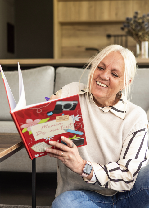 Offrir un livreDis-moi tout, c’est offrir une attention sincère. Expliquez à la personne que c’est une façon de transmettre son histoire, ses souvenirs et ses émotions. Elle peut avancer à son rythme, sans pression, une question après l’autre. Souvent, les proches se prennent vite au jeu car ils comprennent la valeur du cadeau.