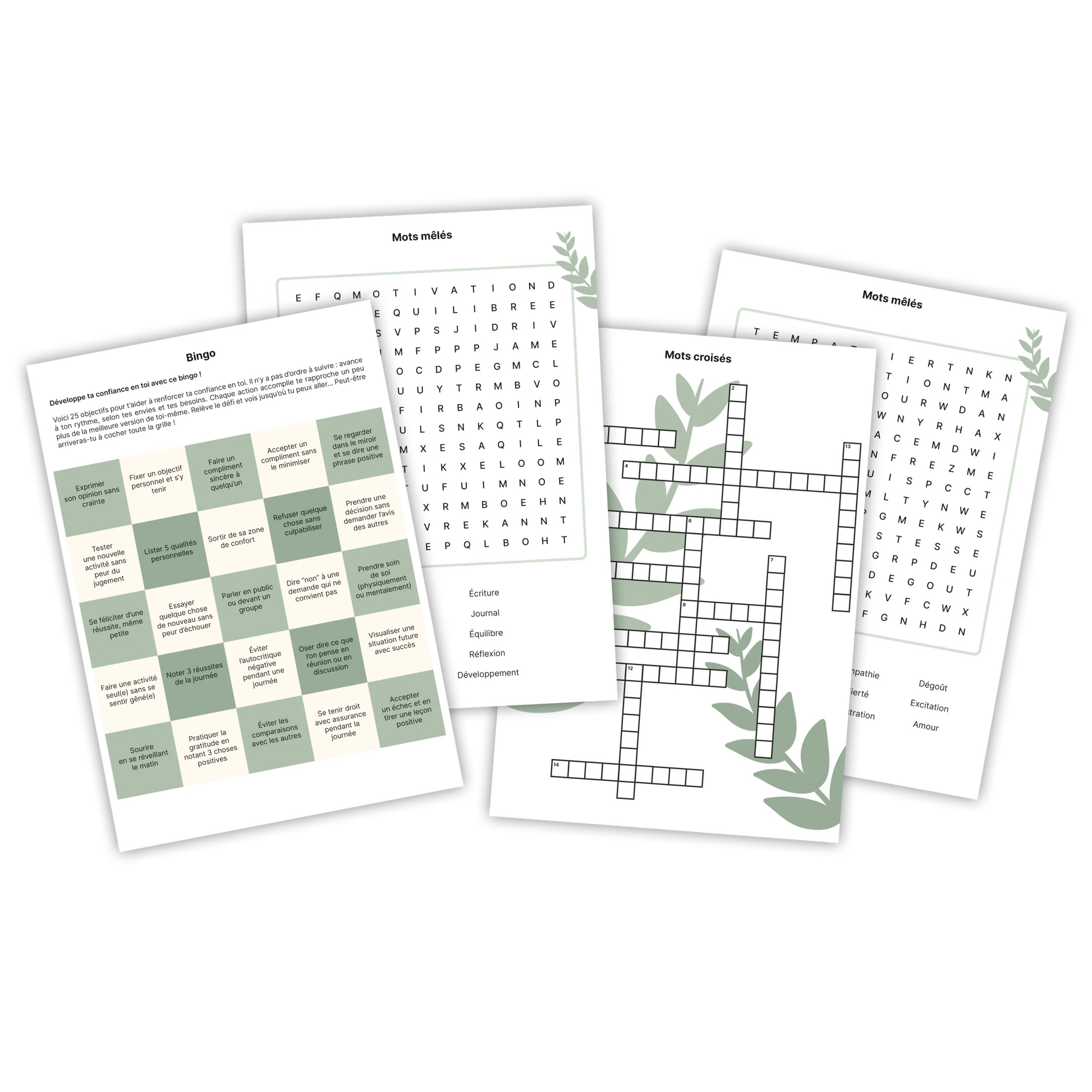 Offre-toi un moment de détente et de reconnexion avec toi-même grâce à ce pack bien-être à imprimer. 19 pages d’activités et de jeux pour booster ta confiance, cultiver la gratitude et te recentrer en douceur, à ton rythme.