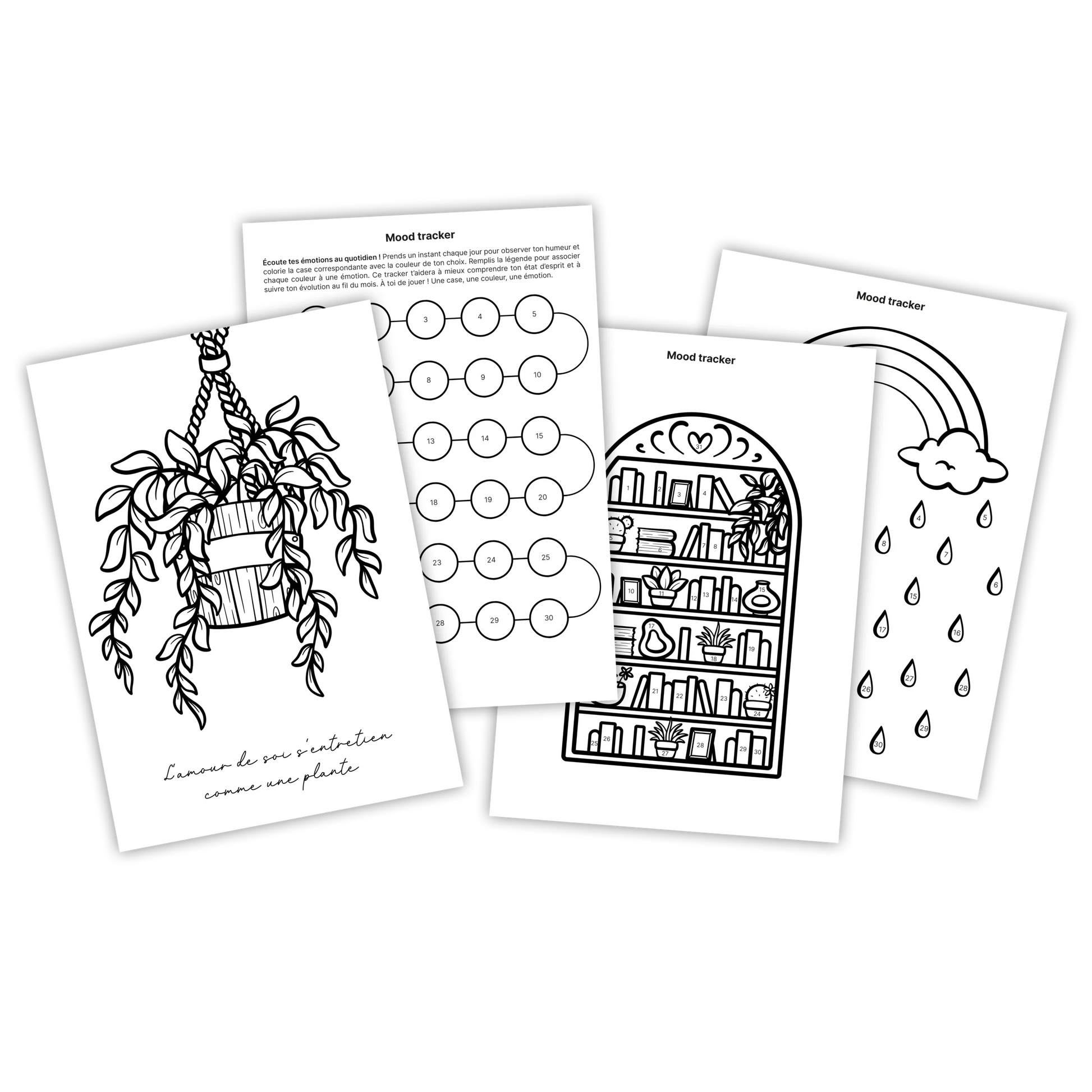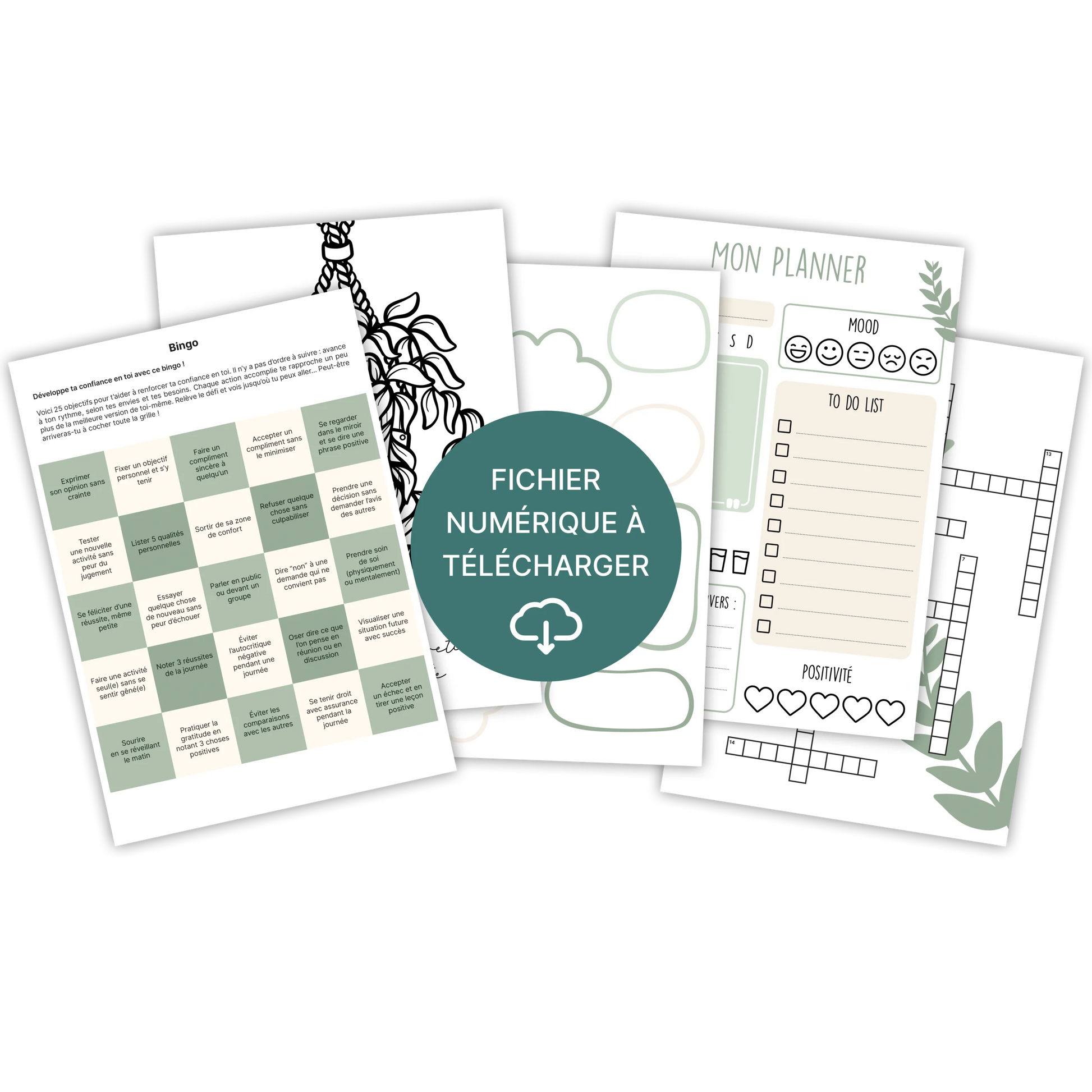 À travers 19 pages à télécharger et à imprimer, tu trouveras des outils simples et accessibles pour prendre soin de toi : exercices de gratitude, petits défis motivants, coloriages relaxants, trackers pour suivre tes habitudes positives, jeux ludiques pour stimuler ta confiance en toi…